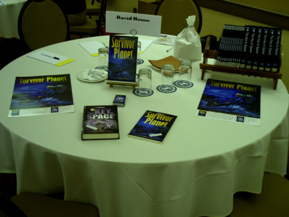 Beach Books, 1747 NW Highway 101. The authors will be seated at tables just off the highway, so you can’t miss them. If the weather doesn’t cooperate, there will be signs at the bookstore directing you to an indoor location. The bookstore will have copies of House’s The Key to Space and Survivor Planet for sale, along with the works of the other writers at the event, and of course the authors will be present to sign their books. This is House's last signing event before the 11-day Oregon State Fair, which will run from Aug. 22 through Sept. 1 in Salem. Here are pictures of the July 31 Writers Faire event in Portland -- click a photo to enlarge it: